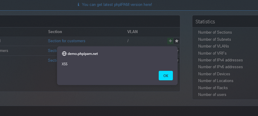 [<https://demo.phpipam.net/app/tools/subnet-masks/popup.php?closeClass=">](https://demo.phpipam.net/app/tools/subnet-masks/popup.php?closeClass=%22%3E)alert("XSS>")